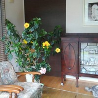 ハンドルさんを知ってからまだ1ヶ月たってないのに、今日で5つ目のキャビネットが届きました。本当に素敵で、我が家のリビングがしまったような気がします。一緒に購入した花瓶に庭のダリアをいけました。一年中咲いているハイビスカス...