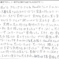 一年程前からダイニングテーブルをHandleさんのホームページで見ていました。大量生産されたものではなく愛着の持てるテーブルを探してました。ただ大きな買物なので実物を見ずに買う勇気も中々持てず、どんなテーブルが欲しいのか...