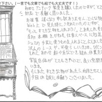 初めてアンティーク家具を購入したのですが、とてもていねいな対応で有難く思いました。どんな物をいれようかWeb上で見た時に決めていたのですが、届いた物を見て「もっとすてきな物を入れよう!」とあれこれ考え直していたのです。