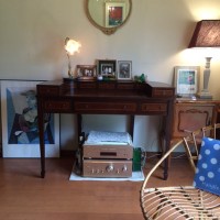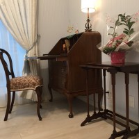夫は「大変いいね」と気に入っています。今回はワゴン、PCノート型を置きました。なかなか使い勝手よいです。アンティーク家具が我家の一員になり、まるで昔からそこにあるがごとく、違和感なくなじんでいると和みます。それがアンティークの魅力なのかも・・・。大切に使わせていただきたいと思っています。