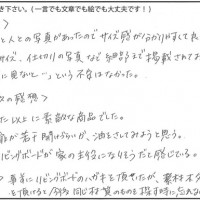 ・事前にリビングボードのはがきを頂いたが、素材名などの説明をいただけると今後同じ材質のものを探す時に忘れないで済むと思う。
