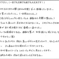 探していた理想の大きさ、形状ではなかったのですが、何度もホームページを拝見して気になって仕方がなかったので、思い切って注文させていいただきましたが、本当によかったです。 どうもありがとうございました。棚や引き出しのついたマガジンラックもリクエストさせていただいておりますので、またよろしくお願いいたします。