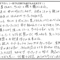 この度は、たいへんお世話になりました。昨日(11/28)に商品無事に届きました。私にとっては、とっても大きな買い物でしたが購入して良かったと思っています。「人生を楽しみたいなら早い方がいい」と50半ば過ぎましたので思いました。素敵な家具に出会い、また家にいる事が幸せです。ありがとうございました。また、ホームページを拝見致します。