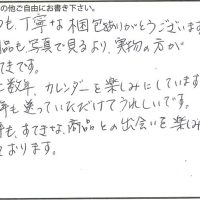 いつも、丁寧な梱包をありがとうございます。商品も写真で見るより、実物の方がすてきです。 ここ数年、カレンダーを楽しみにしていますので、今年も送っていただけてうれしいです。 来年も、すてきな商品との出会いを楽しみにしており...
