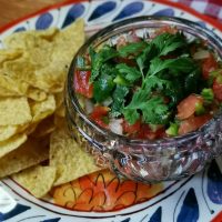 手作りのサルサを入れて使う事が多いのですが、トルティーヤチップスと共に盛り合わせています。