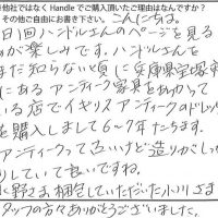 兵庫県Oさまのアンティーク雑貨「1日1回ハンドルさんのページを見ることが楽しみです。」