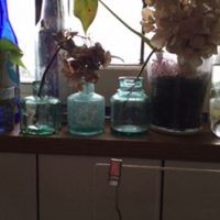 早速、バスケット類は台所へ。計ったかのようにうまく収まりました。調味料を置いていたところがすぐにバラバラになるので、困っていました。簡単なリフォームをしたので、この機に少しだけイメージを変えてみました。ブルーのプレスドグラスは窓辺に置きましたが、もう少し背が高かったらうまく光を通したのになーと残念でしたが、とってもきれいで満足しています。3本セットのグラスは、一輪挿しにしようと思っています。今回もおせわになりました。また、よろしくお願いいたします。