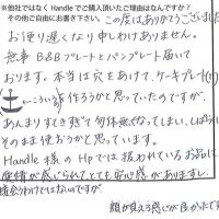 Handle様のHPでは扱われているお品に愛情が感じられて、とても安心感がありますし、直接会うわけではないのですが、顔が見える感じが良かったです。
