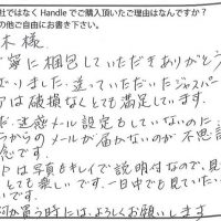 こんにちは昨日、注文の品が届きました。ありがとうございました。