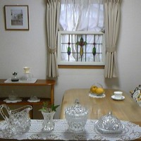 家を新築した際に、食堂のライトを探しました。かわいいフリルのを3個購入させていただいたのが最初です。時々小物を買っては楽しんでおります。今回は象のガラス食器ですが、グリーンのカーテンにマッチしてます。