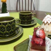 本日楽しみにしていたカップが届きました。丁度夫の誕生日だったので、お仕事帰りにケーキを買って帰り二人でケーキとココアでお祝い致しました。グリーンの美しい色合いが素敵で、お休みの日にお茶を頂くのが楽しみです。秋に届けて頂いた、アーコールのチェアーとも合いますね!