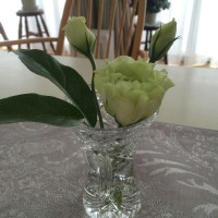 私の家族は従来みんな花好きで、私も新居に移ってから花を飾ることを楽しんでいます。でも日本はほんとに素敵な花瓶が少ないですね。花を飾る家庭が少ないことも残念です・・・。最近やっと現行品でもいい花瓶を売るところを見つけましたが、プレスドグラスにはまた違った魅力があります。