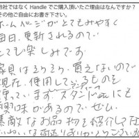 handleの皆様こんにちは。11月14日にメールを下さりありがとうございます。私はアンティーク家具は不安でまだ使ったことはありませんが、ステンドグラスはとてもステキでした。思わず、買ってすぐに2個目を買ってしまったくらいです。実際にHandleのお店に行って、この目で家具を見てみたい気持ちでいっぱいですが、それまでは毎日ホームページでお会いしています。