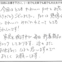 今回はとてもかわいいPotとお花、ありがとうございました。Potは想像以上にきれいにみがかれていてとてもうれしいです!家具を検討中で毎日新着商品チェックしております。近々またお世話になると思いますので、よろしくお願いします。