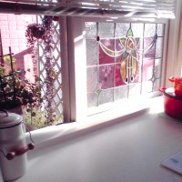 宮城県Iさまのアンティークステンドグラス「朝日の当たるところに飾りました。とても可愛いですよ。癒されています。」