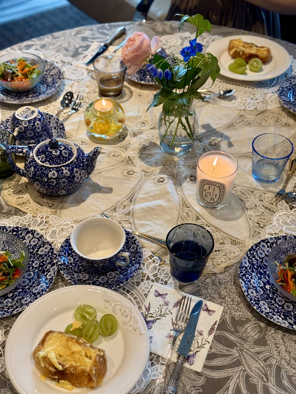 鹿児島県Kさまのブルーキャリコのティーポットなど「ある日のアフタヌーンティー」