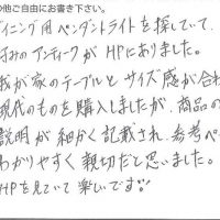 神奈川県Mさまのペンダントライト「HPを見ていて楽しいです。」