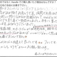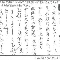 ハンドルさんのホームページは、以前から好きでよく見ていました。購入された方の感想を見て、信頼をおけるショップと感じました。