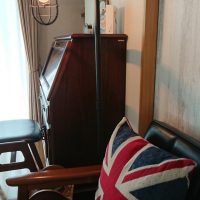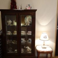 この度は大変お世話になりまして、ありがとうございました。昨日、とっても可愛らしいテーブルランプを受け取らせて頂きました。お部屋のどこに置いても、しっくり来る、とっても素敵なランプに癒されています♪早速、以前購入させて頂きましたアンティーク風のキャビネットとツーショット♡♡