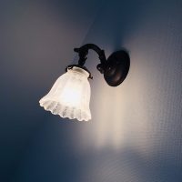 先日『ウォールブラケット』を購入し、さっそくデンキやさんに取り付けてもらいました。夜にライトを灯すとそこだけは異空間になり、やさぐれた心を癒すようなあたたかい灯りでした。アンティークのある暮らし、いいですね。