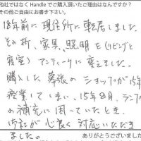 18年前に現住所に転居しました。その折、家具、照明を(リビングと寝室)アンティークに変えました。購入した幕張のショップが15年頃廃業してしまい、15年8月、ランプの補充に困っていたとき、御社が心良く対応いただきました。