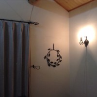 珪藻土の壁とアイアンのカーテンル、リネンのカーテンと調和してとても素敵な空間を作ることができました。ありがとうございました。Handleさんはインテリアの本でしりました。アンティーク調のインテリアに興味があるので、また是非利用させていただきたいです。今は、ペンダントライト、スイッチ、スイッチプレートを考えています。