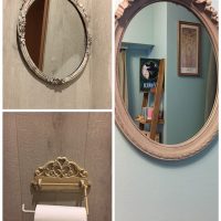 こんにちわ。いつも丁寧な梱包、丁寧なご対応有難うございます。現在家の壁紙の張替えやペンキの塗り替えを週末ごとにちまちま行っており、先日求めた鏡とトイレットペーパーホルダーを、ようやく設置出来ました。想像以上に素敵にトイレが変わり、とても嬉しいです。白い木目調の壁紙がトイレです。私室の壁紙もブルーのものに張り替え、こちらにも鏡をかけてみました。予定では玄関で使おうと思っていたのですが、あまりにもしっくりきたため、玄関用にはまた探す事にします。全ての部屋に鏡を設置したいくらい、鏡の存在は素敵ですね。この度は素敵なお品を有難うございました。これから、キッチンの壁紙張りを行います。後ほど、タオルフォルダーも注文させて頂きますね。まだ、クリスマスリースとナッツクラッカーは飾っておりません。ここだ!という設置場所がピンときて飾りましたら、また写真を送らせていただきます。