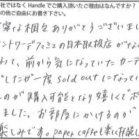 丁寧な梱包ありがとうございました。コントワール・ド・ファミーユの日本取扱店がなくなって、前から気になっていたカーテンでしたが一度sold outになっていたものが購入可能となり嬉しくてポチしました。お部屋にかけるのが楽しみです。paper caffeも楽しく拝読しました。