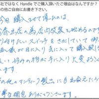 この度は、とても素的なチェアを届けて頂いてありがとうございました。Handleさんにお世話になったのは今回で2回目ですが、以前購入させて頂いたキャビネットもチェアもとても素的で、満足と感謝でいっぱいです。 今後も色々なア...