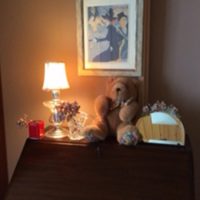 お世話になります。送っていただいた小物、キッチンと以前のライティングビューローの上に飾らせていただきました。ランプのシェードは小さいかなと思いましたが、前のシェードを変えましたら、大丈夫でした。