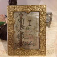 こんにちは。無事に届きました!すこし前にアンティークマーケットで購入した1900年頃のホーリーカードを入れて飾ります。写真添付しますね。ありがとうございました!またよろしくお願いいたします。