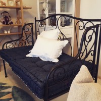 以前購入致しましたナーシングチェアーとも高さが丁度でゆっくりした時間を過ごせそうです😊 今は空いた娘の部屋に仮置きしていますが、増設できたらそちらに置こうと楽しみにしております。 いつも素敵なアンティークをありがとうございます✨✨