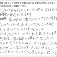 先日チェストをお送りいただきました。厳重に梱包されていたことにまず感動致しました。足にはしっかりとクッションが巻きつけられ板まで敷いていました。梱包を開ける時宝物が入っているようなワクワク感がありました。ホームページが素敵です。