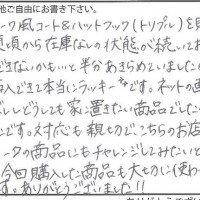 ネットで拝見しました通りの素敵なお品物でした。これから大切に使わせて頂きます。ありがとうございました。取り急ぎお礼まで.。
