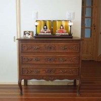 今回出会ったこのチェストは、新居の一角にピッタリでした。猫足の部分が長いため、壁の上下に余白が出来て圧迫感もなく、上には季節のもの(雛飾り五月人形など)を飾りたいと考えていたので理想通りのサイズ感です。もちろんデザイン、雰囲気も優雅で気に入っております。部屋の雰囲気が一気に大人になりました。それでは、本当にありがとうございました。これからもHP楽しみに拝見します。