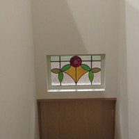 以前ステンドグラスを購入した者です。マイホーム完成しましたので、施工写真を送らせてもらいます。リビング階段の上に設置しました。とても気に入っています。
