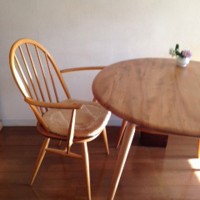 先日購入したばかりですが、すっかり馴染んでいます。ずっと前からある感じ。この場所に居る時間が長くなっています。椅子が届くまでは、やはり不安、商品の状態は大丈夫かしら?などなど‥。椅子のアーチの先端のキズと汚れはやはり気になりますが、これも愛着と感じてます。何はともあれ、日々愛用しています。次は、コーナーラックの様な商品を探してます。
