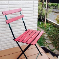 写真送りま~す。テラスに置いてますが、持ち運びやすく、風が強い日は折りたたんでしまえるので重宝してます。 神奈川県 Kさま 【ご購入商品】アンティークガーデンチェア
