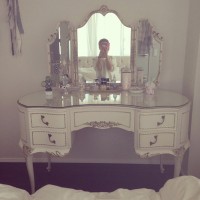 お世話になっております。昨日アンティークドレッサー届きました。やっぱりとってもとっても素敵です(^^)!!ずっと探していたのですがなかなかコレ!というものがなく、妥協して買うのはイヤだったので購入しないまま数年経っていたのですが、このドレッサーは見た瞬間に運命を感じてしまいました…(^^)