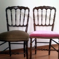 いつもお世話になります。ナポレオンチェアー到着しました。家には一客先輩がいますが、ダンディーですが、今回はとても女性らしい(^-^)二客並んで素敵です。なかなか無塗装のナポレオンに巡り会えなくて…今回はとてもテンションが上がりました(^-^)vありがとうございました。