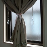 元々このカーテンは、長すぎた丈を切りっぱなしにして放っておいたのですが、これを機にリバティの生地で裾も処理しました。すっかり欧風になりましたよ♪パーツ1つでもアンティークの雰囲気は素敵ですよね。有難うございました。