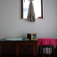 写真は、我が家のアンティークな一角。ハンドルさんで購入したコファー・スツール・シャンデリアパーツを集めたお気に入りの場所です。小さいですが、写真立てにかけて飾っているクロスも、フランスアンティークのロザリオなんですよ。アンティークな生活を今後も楽しみたいと思います。この度も、有難うございました!