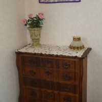 いつもお世話になっています。先日頂いた物のどうぞよろしく写真を送らせていただきますね。バラのポスターは階段のランプの下、プレスドは、チェストお願いいたします。