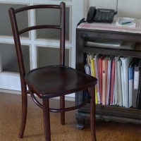 ネットでは座ってみることができず、多少不安はありましたが、座り心地もグーです。出がけ前につき、取り急ぎ ”無事”のご報告まで、、、。いつぞやはメールをありがとうございました。お届けいただきましたベントウッド・チェアーは我が家でさし当たって今のところ電話台の前に鎮座しています。