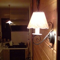 夏から貴社のwebSHOPを利用し、写メの通りとてもうれしく生活に取り入れています。小さなキッチンですが、ウォールランプやペンダントライトで雰囲気が変わり家族にも好評です。一番最初に購入したガラスのペンダントライトは私の机の上に取り付けています。