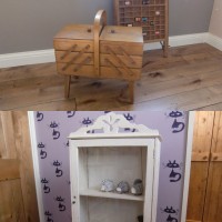 商品受け取りました。思っていた以上に素敵で、まるで以前からあったようにすんなりなじんでいます。きっと大切に使われていたのでしょうね。私も大切に使わせていただきます。ありがとうございました。P.S 今回のソーイングボックスと以前購入させていただいたスモールキャビネットの写真を添付させていただきます。