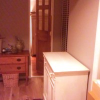 壁は薄いグレーなので、白のキャビネットがとっても合ってすてきな空間となりました。これから家具の入れ替えをしてこのキャビネットの落ち着き場所も決まることになります。犬のプティも大きなエアーマットや段ボール、そして新しい家具の臭いに大興奮していました。
